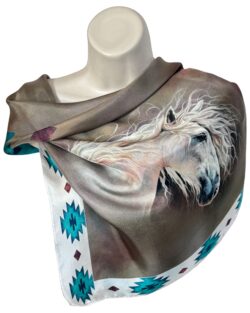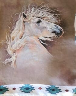 - Tasteful & Fun White Line Drawing of Horse and Rider with Inspirational Message: “Let the Horse Move You”